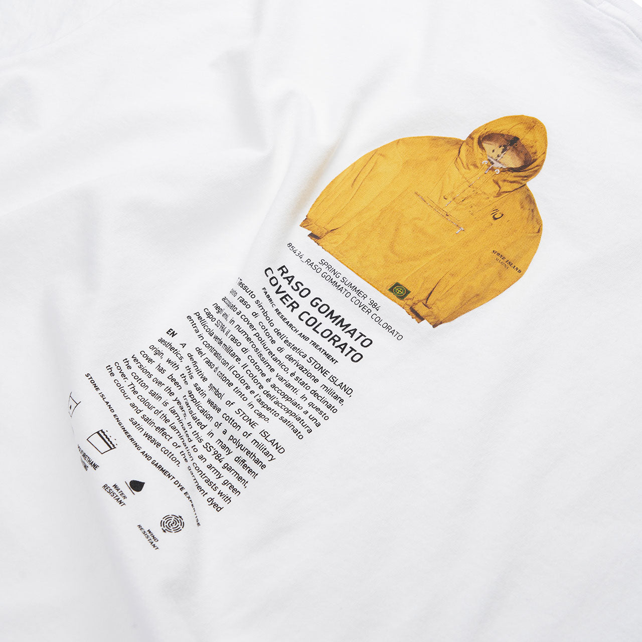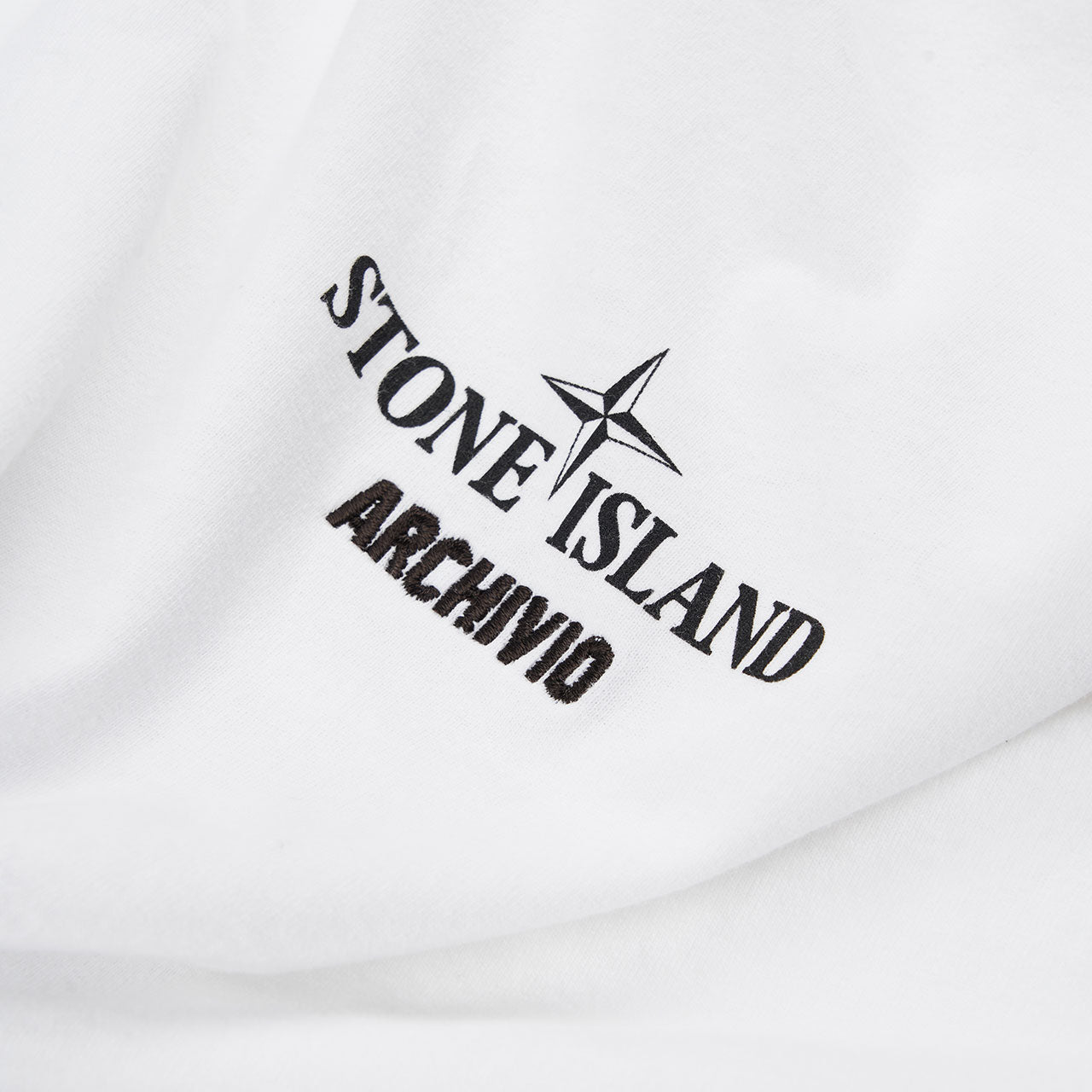 die "archivio"-linie von stone island ist ein projekt, das bestimmte innovative textilien aus der geschichte der marke hervorhebt. in dieser saison wird das archivio-t-Shirt aus polyester-mikrofaser hergestellt.