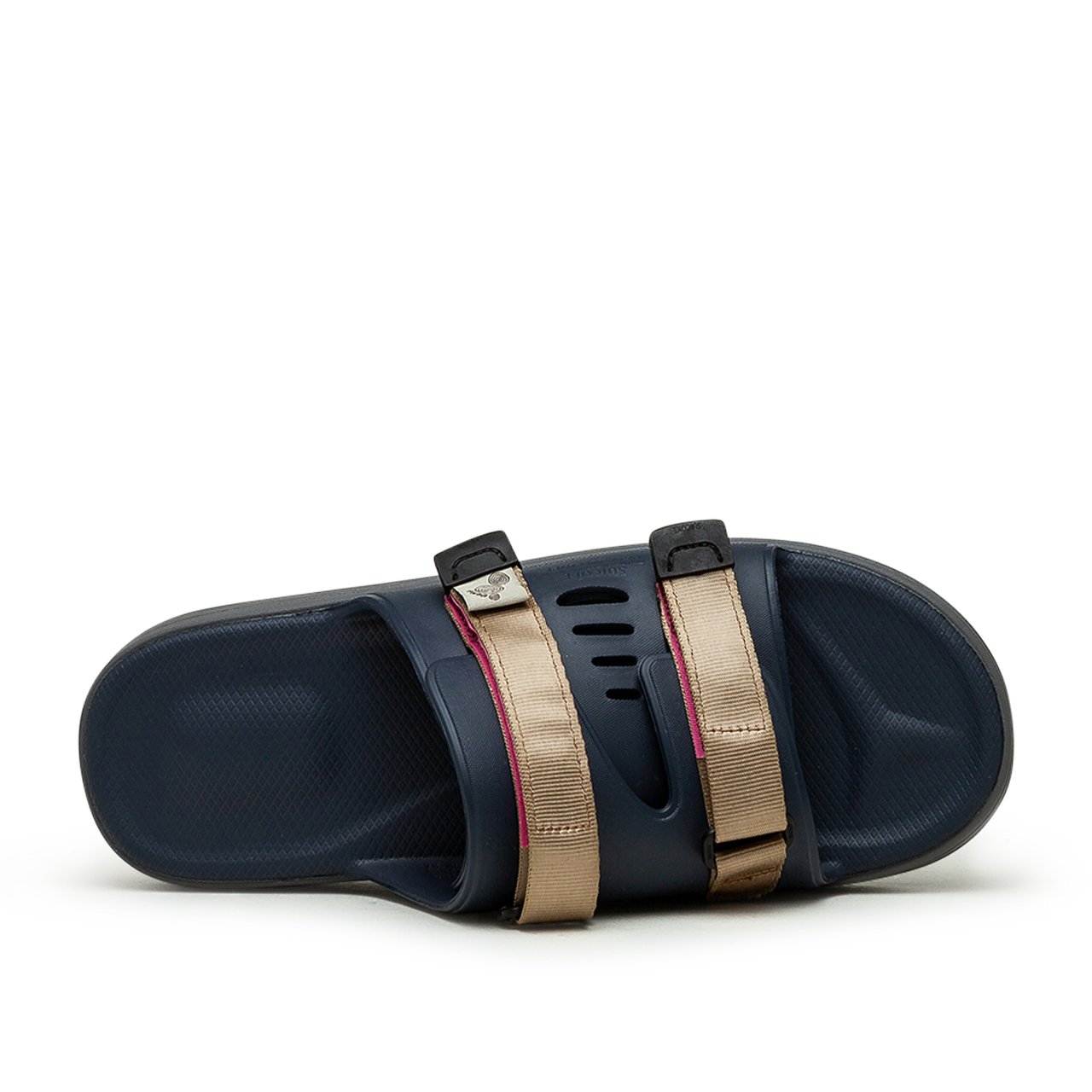 gummisandalen der japanischen Traditionsmarke suicoke mit geformter Innensohle, Riemenverschlüssen und offener Spitze.
