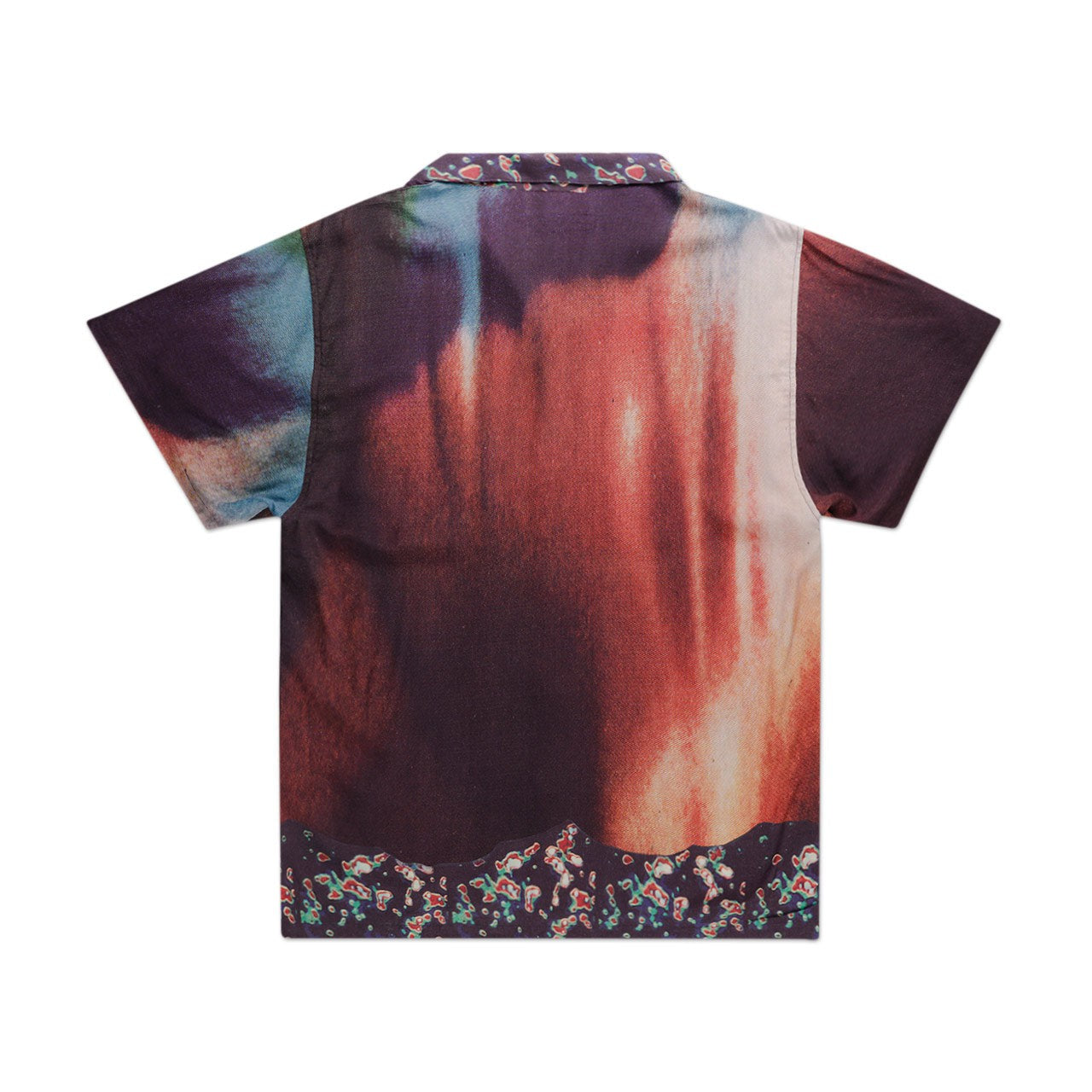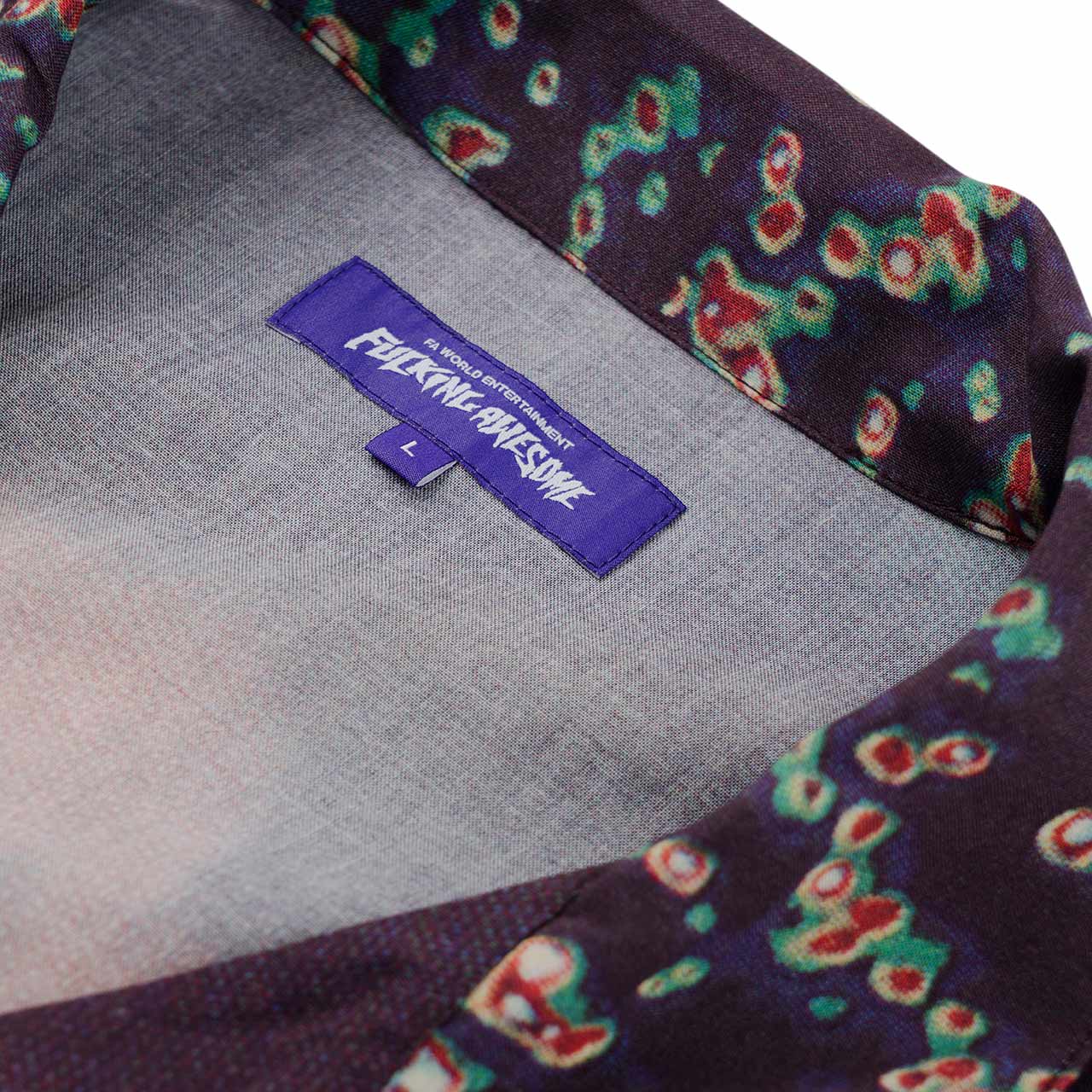 all over print shirt aus der ss22 kollektion von fucking awesome. der körper des shirts zeigt einen verrauschten, verpixelten druck, während der kragen und der untere saum heizkameramäßige blasen aufweisen.