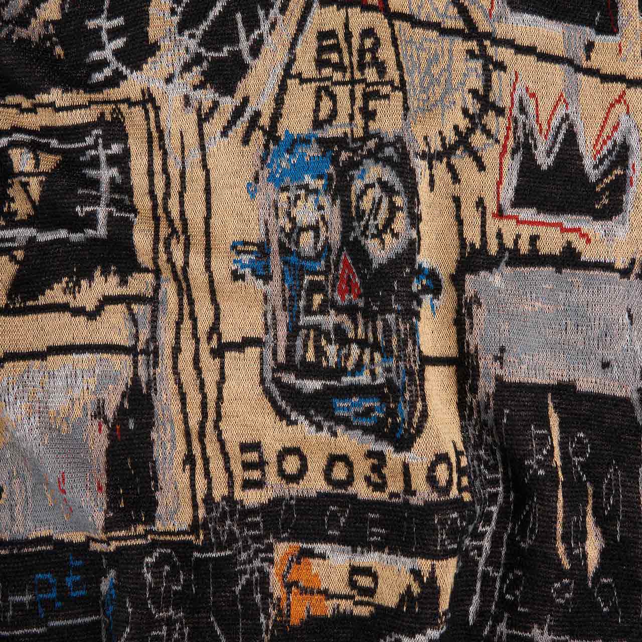 der Rundhalsausschnitt ist mit einem Allover-Druck des verstorbenen Jean-Michel Basquiat versehen.