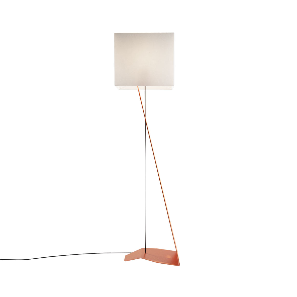 the matjore floor lamp celebrates its comeback and convinces with its geometric shapes and clear lines. the matjore is made of finest aluminium and chintz. a standard e27 bulb serves as the light source.