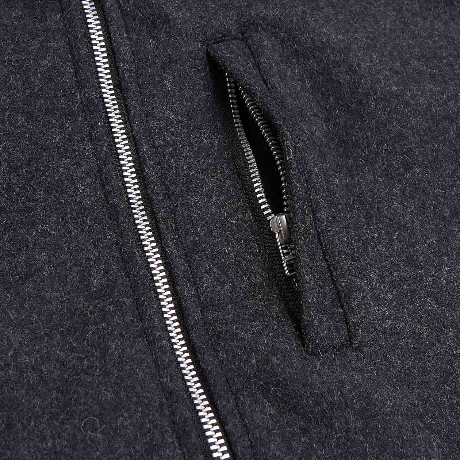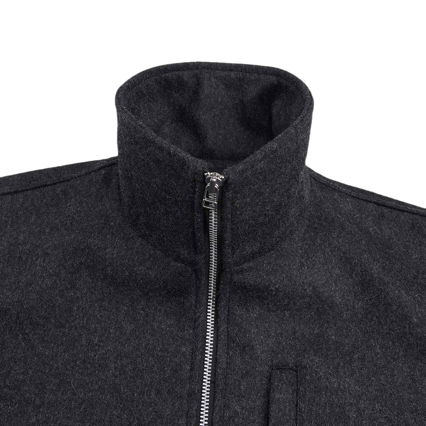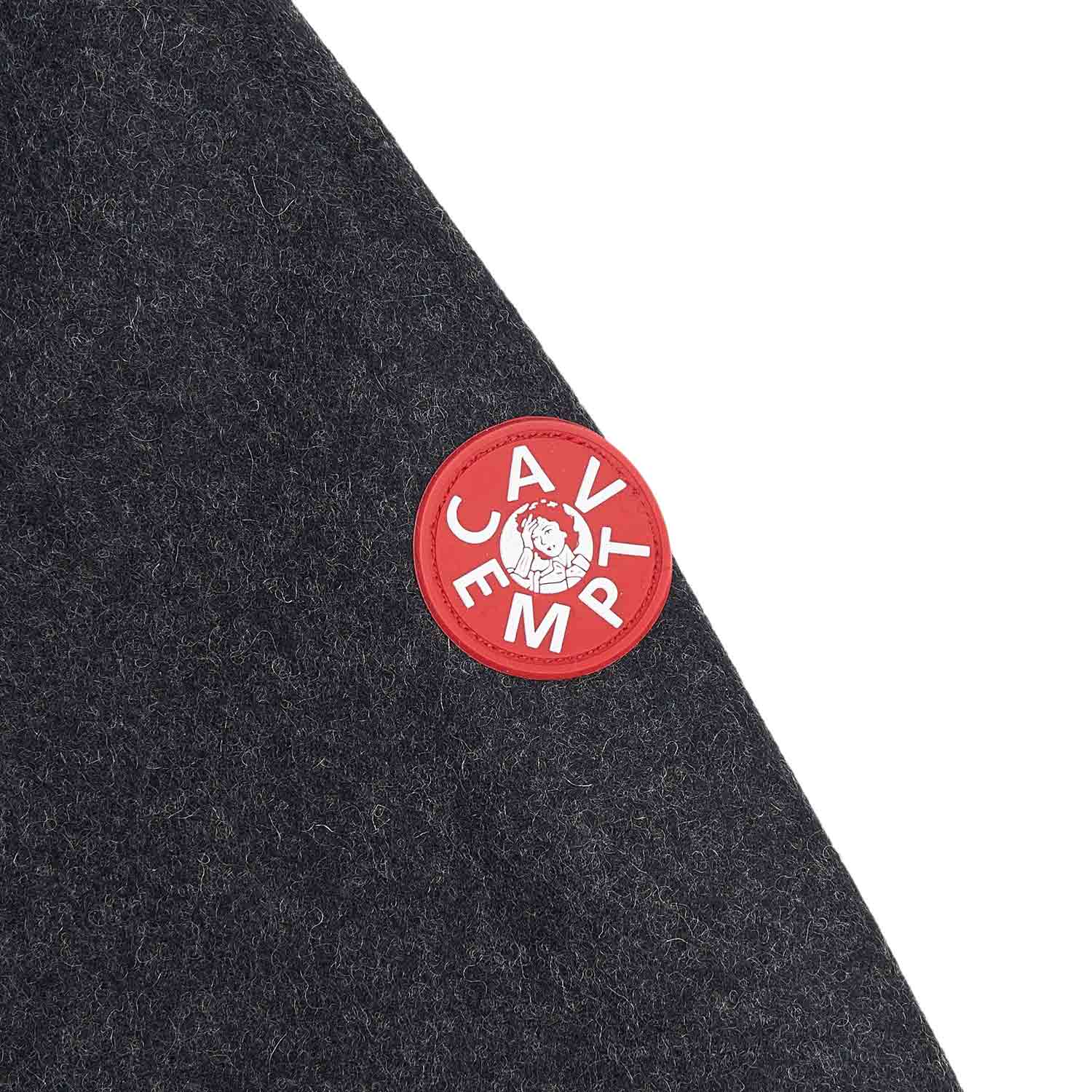 reflect wool zip jacket from the spring / summer 24 collection. the jacket features reflective stripes on cuffs and hem and a cav empt logo patch on the left sleeve.