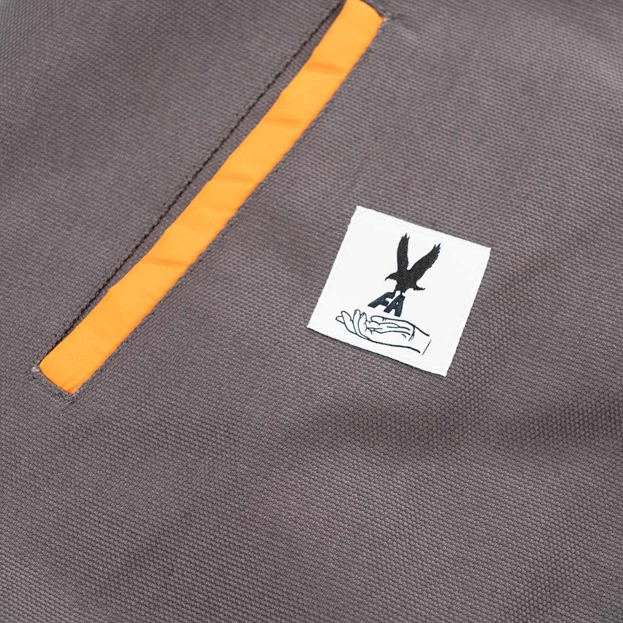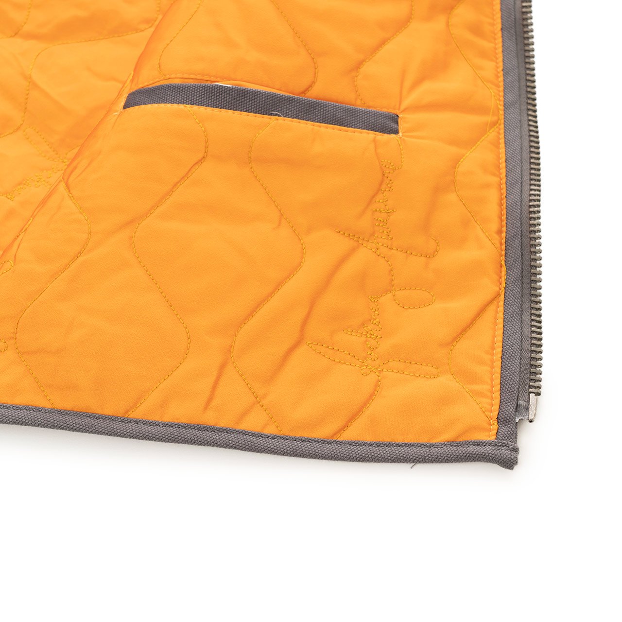 reversible utility vest by fucking awesome. one side being grey with a small logo patch and the other orange.