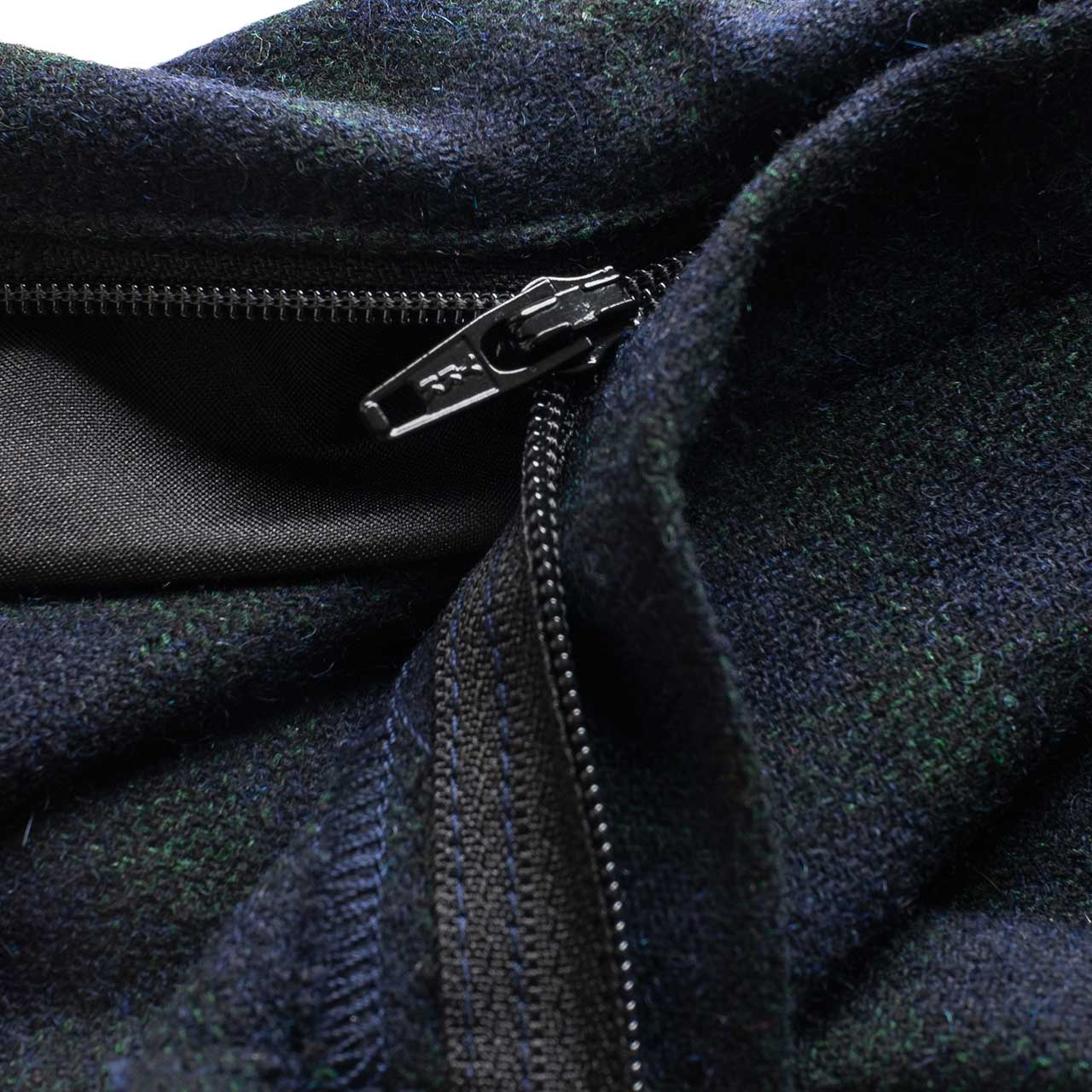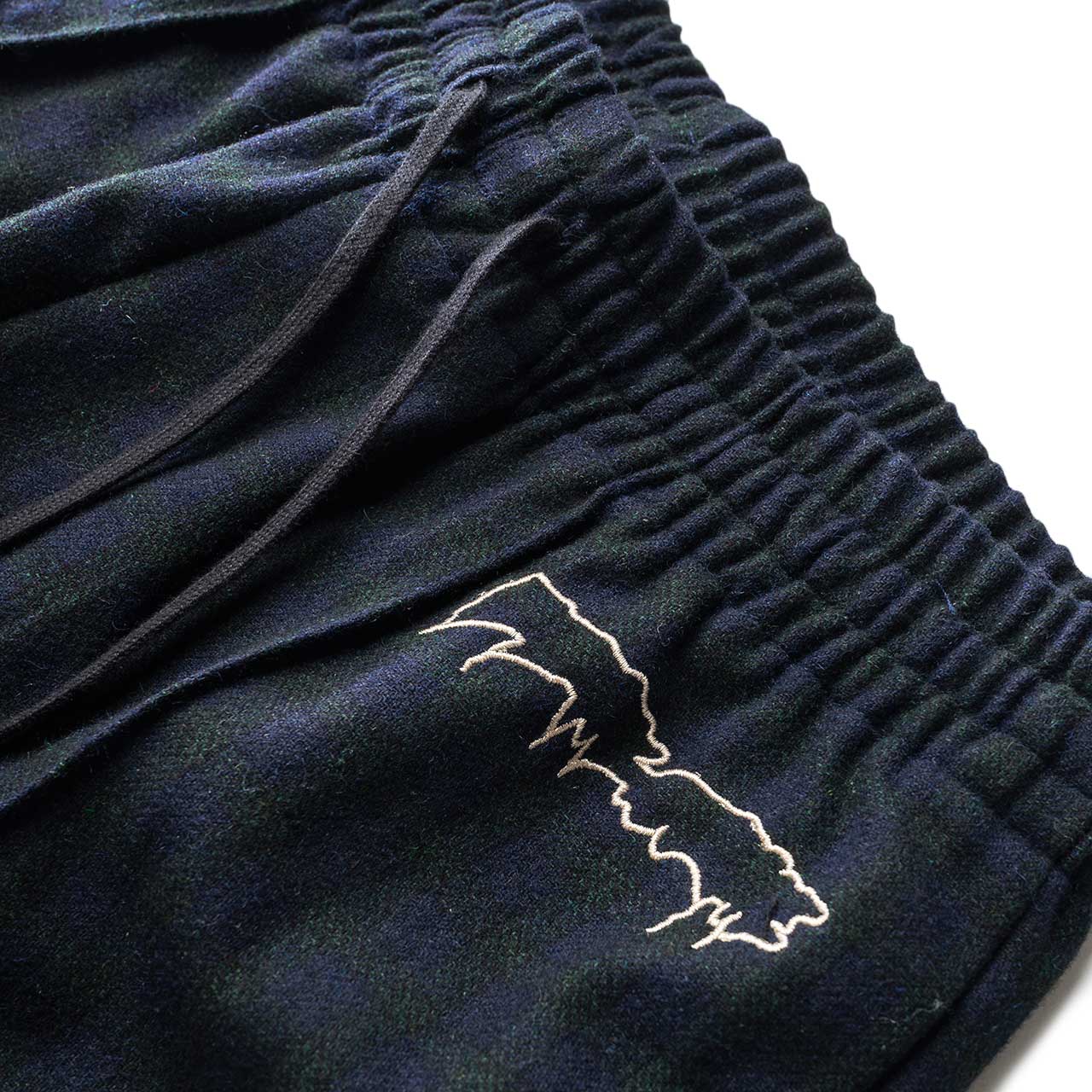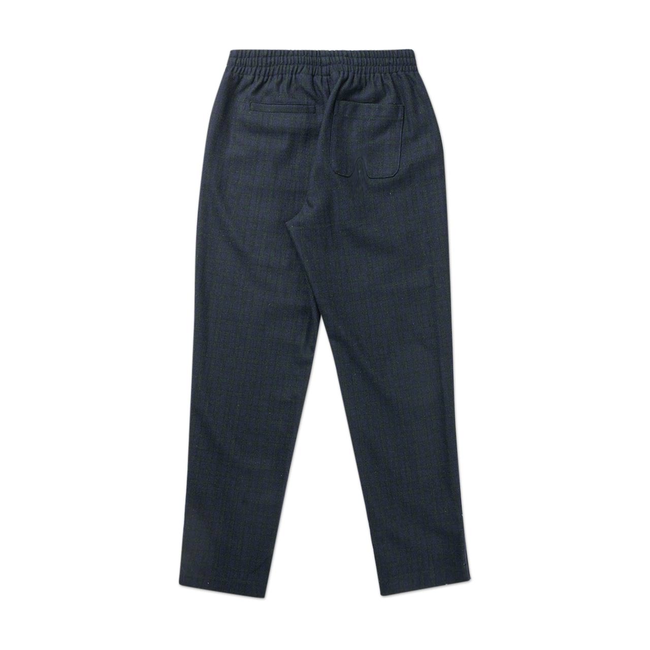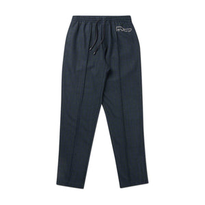 tailored work pants with a track pant like 'puerto rican seam' and the centre front of the legs.
