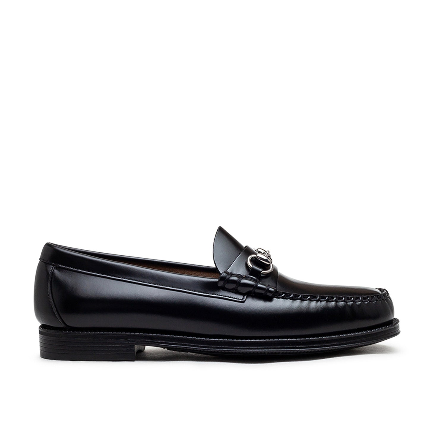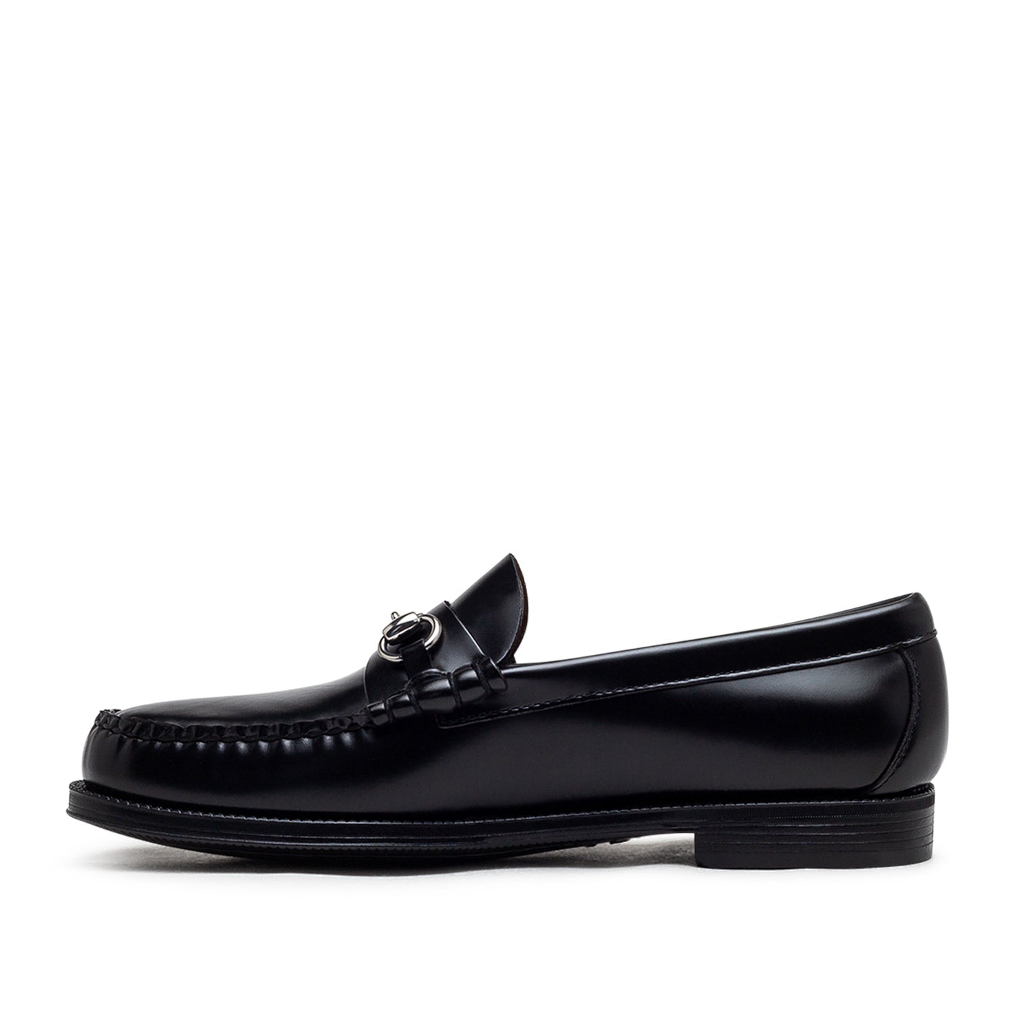 the g.h. bass & co. easy weejuns lincoln penny loafer in black leather combines classic style with modern comfort. the polished black leather upper gives the shoe an elegant appearance, while the hand-stitched seams highlight traditional craftsmanship. the unlined construction ensures a lightweight feel, and the soft rubber sole offers both flexibility and durability. perfect for daily wear and versatile styling.