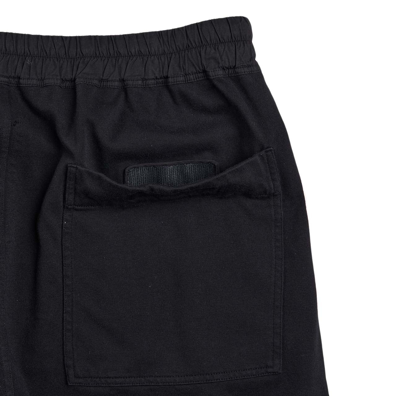these pants from the ss23 rick owens drkshdw collection are featuring two front pockets and two pocktes with hoop and loop fastenings on the back.