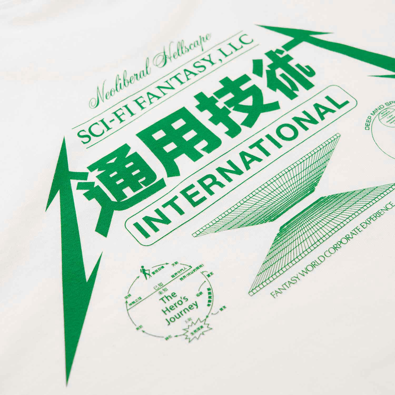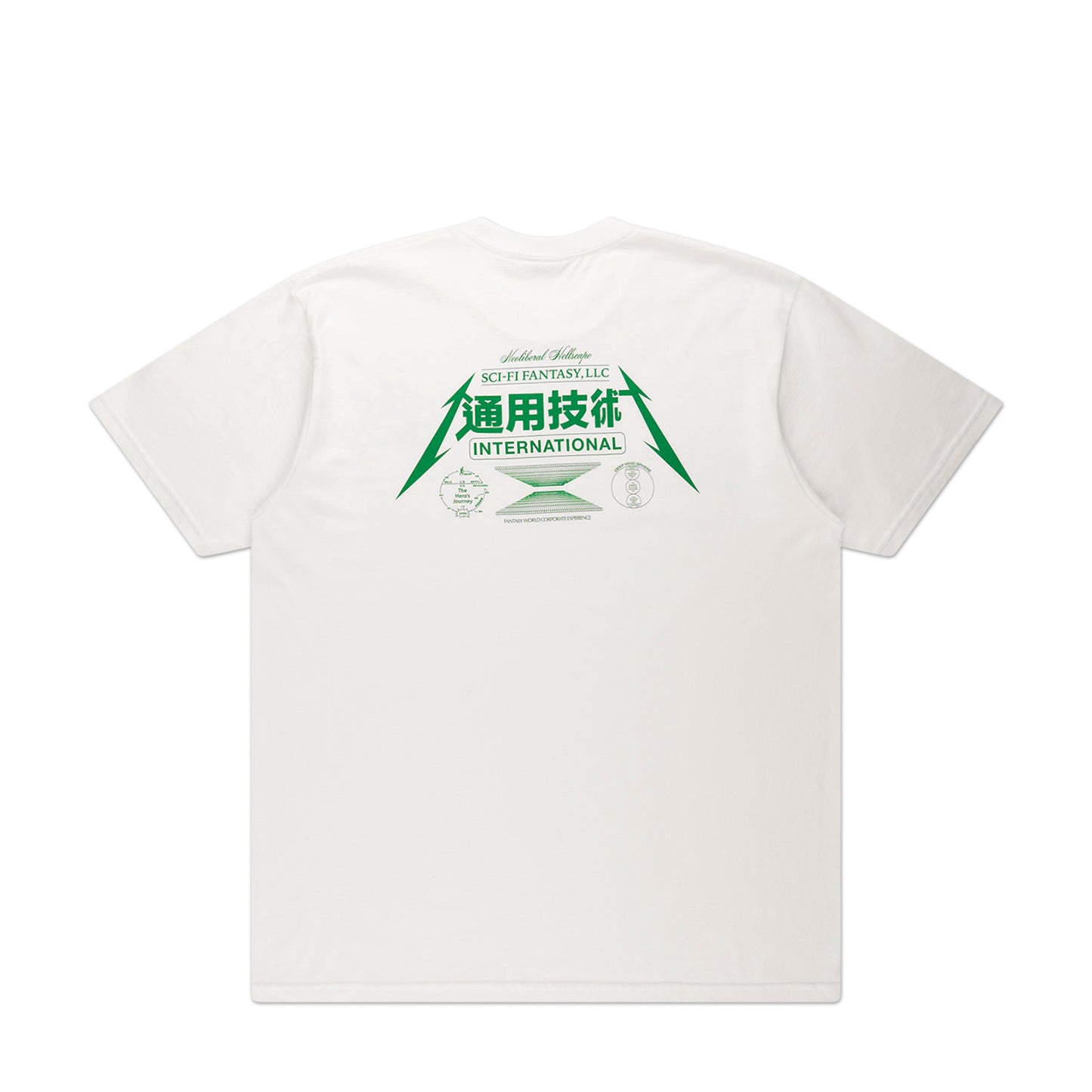 the sci-fi fantasy t-shirt in white delivers a futuristic vibe in a modern classic fit. made with a tubular body for durability and comfort, this tee features bold screen-printed graphics on both the front and back, showcasing sci-fi fantasy's distinctive aesthetic. crafted from 100% heavyweight soft ringspun cotton, it’s comfortable on the skin and built to last.