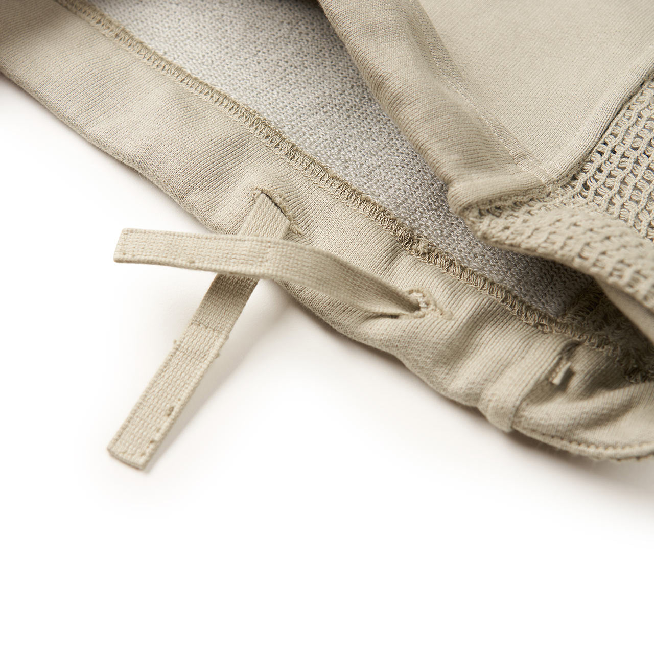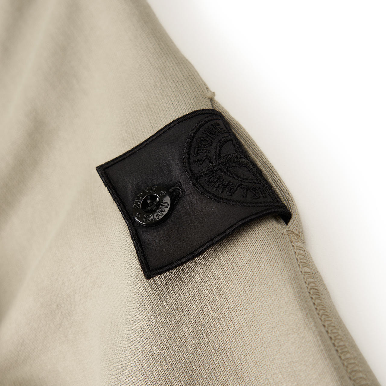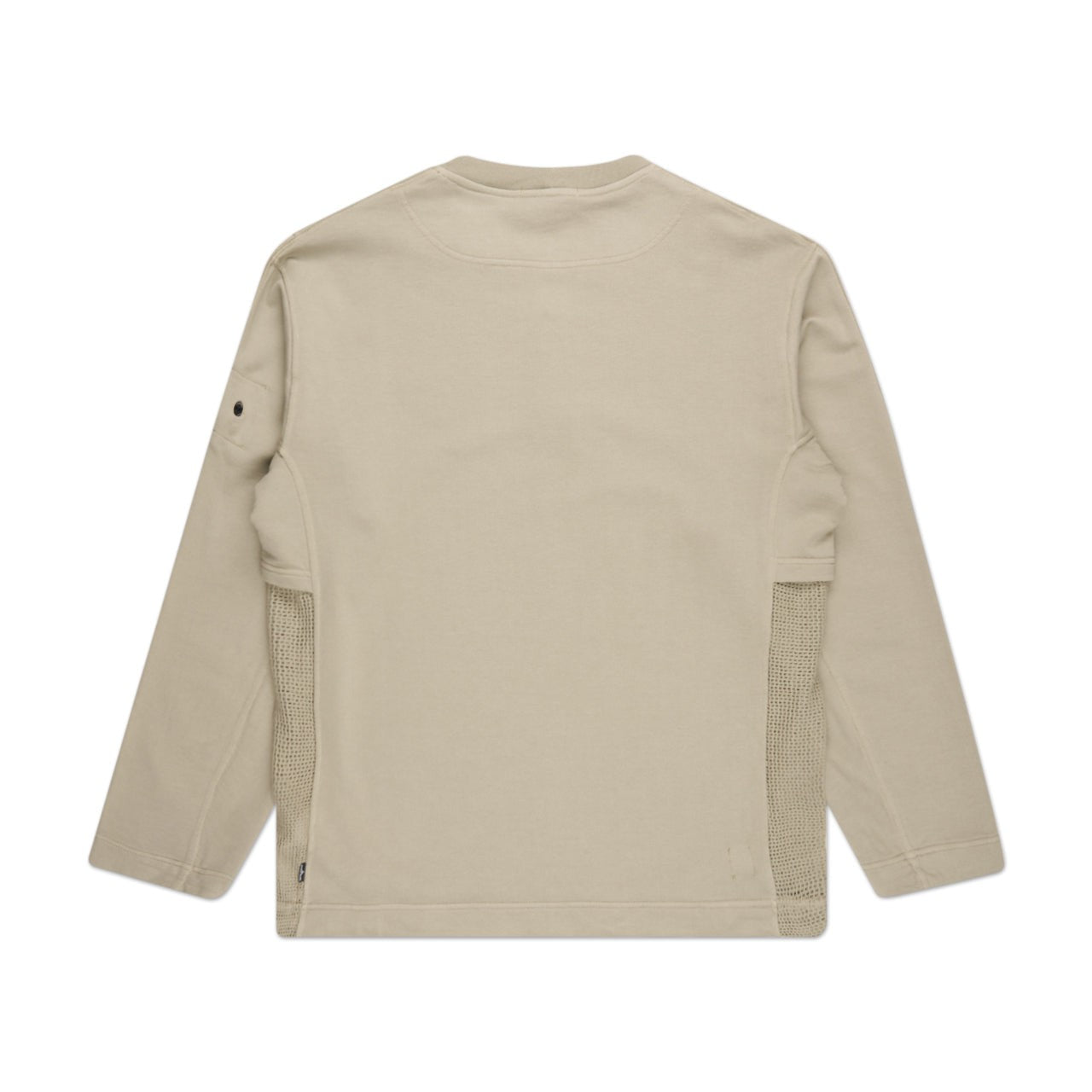 sweatshirt from stone island's latest shadow project collection. the sweater features a mesh panel on each side, showing off the layer worn beneath the hoodie. features the iconic, half hidden shadow project badge.